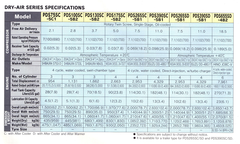 Máy nén khí di động Airman ( PDSF 530S - PDSF920S/G850S )