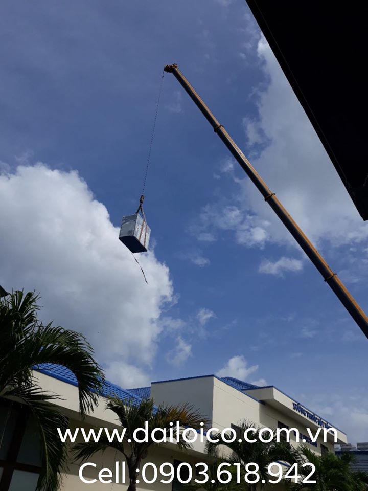 Việc đưa máy lên tầng kỹ thuật cũng thật hồi hộp và hấp dẫn ,chuẩn bị bắt tay vào công tác lắp đặt ...