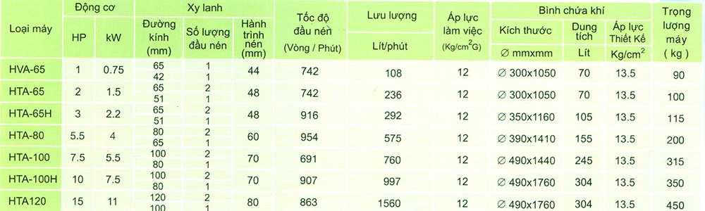 Bình chứa khí : 245 L(Þ490 x 1440 ) mm
