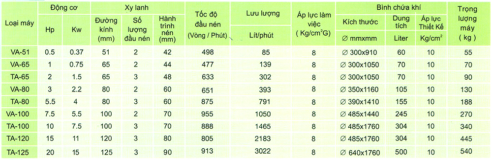 (Công suất từ 1/2HP ~ 20HP)
